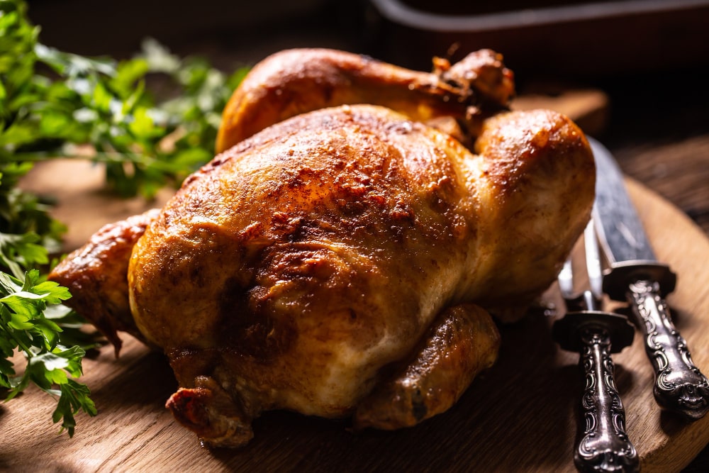 Le poulet est au cœur de notre métier et de notre passion depuis les débuts de l’entreprise en 1946. C’est un produit que nous connaissons parfaitement et pour lequel nous exigeons la plus haute qualité. Nous sélectionnons nos poulets avec une grande attention, en privilégiant les volailles issues d’élevages landais reconnus pour leurs bonnes pratiques, garantissant ainsi une chair ferme et savoureuse. À notre stand des Halles de Tarbes, vous avez le choix : repartez avec un poulet entier frais ou des découpes spécifiques (filets, cuisses, etc.) pour réaliser vos recettes maison, ou optez pour notre fameux poulet rôti, doré et juteux à souhait, prêt à être dégusté. Polyvalent, délicieux et apprécié par tous, le poulet est bien plus qu’un simple produit, c’est une spécialité que nous sommes fiers de vous proposer avec le meilleur de notre savoir-faire.